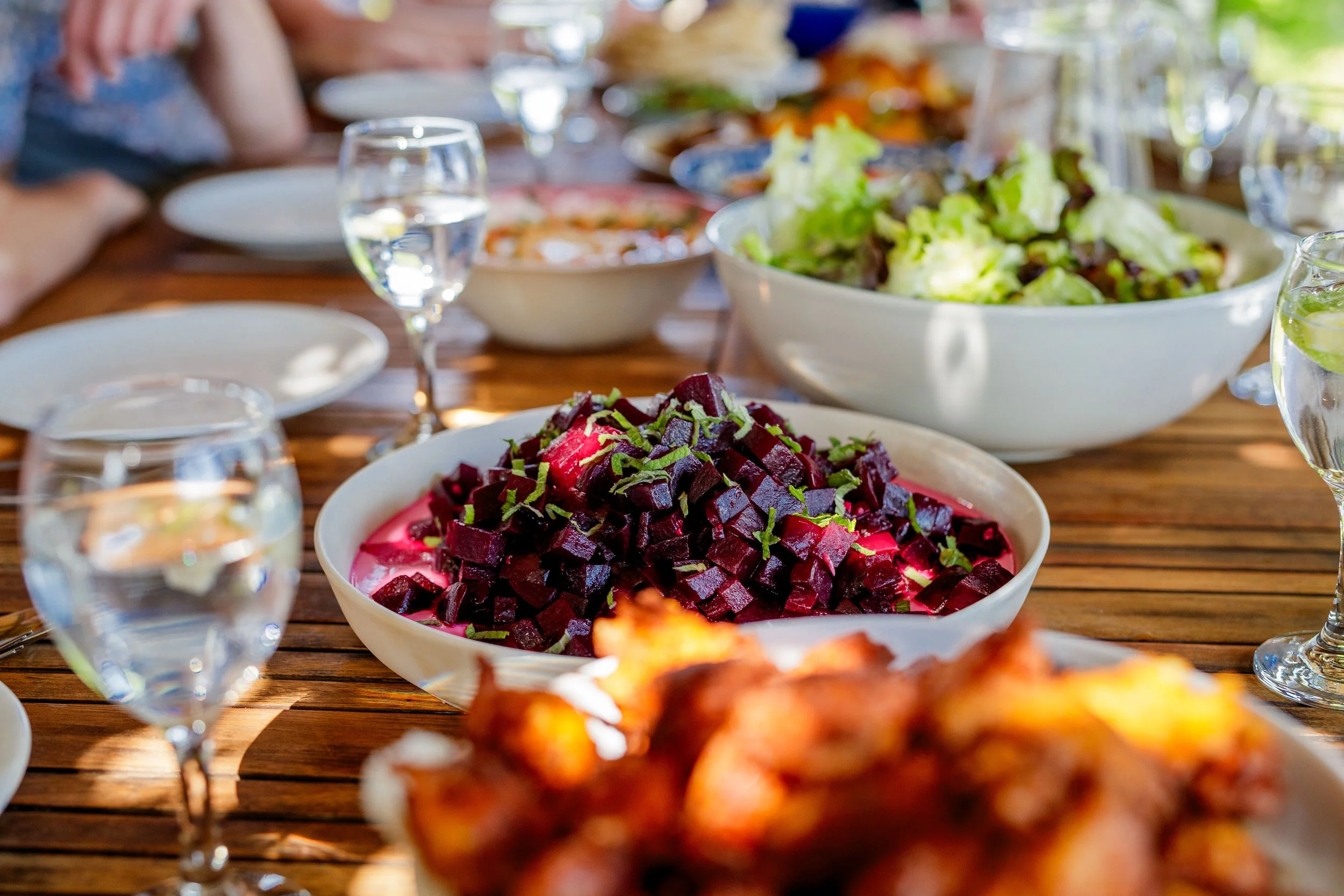 Our meals are prepared on-site with fresh, seasonal ingredients sourced from local farms and markets. Each dish is crafted with love and care by our in-house chef and served family-style in a relaxed, buffet-style setting that brings everyone together.